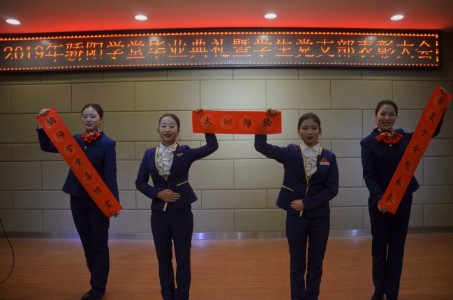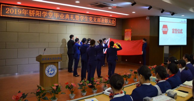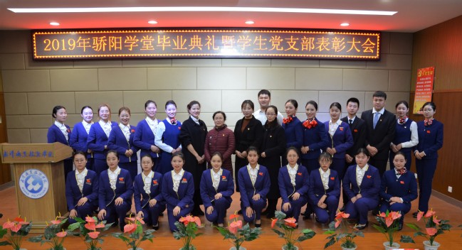 武职网讯(通讯员马瑞阳 老员工记者范艳)12月25日下午,旅游与航空服务“2019年骄阳学堂毕业典礼暨员工党支部表彰大会”在逸云楼举行,该院分党委书记周杏珍、专职组织员周雯、员工党支部书记以及200余名骄阳学子齐聚一堂,共同见证骄阳学子从幼稚走向成熟的关键时刻。