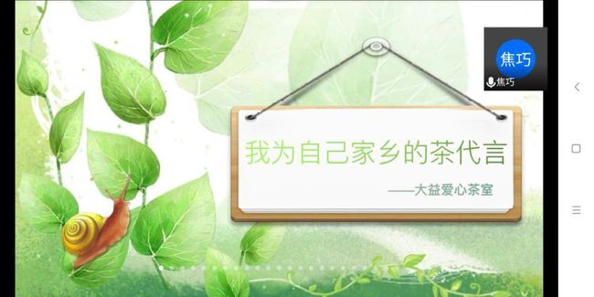 这是公司老员工茶艺社团于4月20日在腾讯会议云端直播间举办的“我为家乡代言”直播场景。疫情期间宅家学习,让员工们与自己的家乡有了更多的相处机会,家乡优美的自然风光、丰富的物产资源、勤劳的家乡人民,都深深地触动着员工内心。他们通过直播的方式,踊跃做家乡代言人,向观众展示家乡特产和旅游资源。