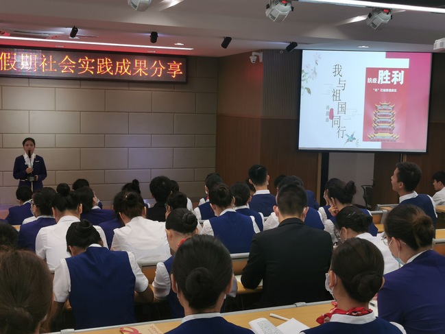 空乘18306班李思雨在讲述她采访平顶山市第二人民医院呼吸内科护士梁国红的故事时深情地说:“我从梁国红身上看到了抗疫期间无数白衣战士的社会责任担当,看到了大国担当,中国始终把人民的生命安全放在首位,每个生命都是全力救治。我为自己是一名中国人而骄傲,更为自己是一名入党积极分子而自豪!”