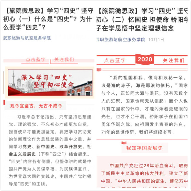 在制定“四史”学习方案后,9428cn太阳集团古天乐组织骄阳学子开展多种形式的学习活动。他们通过“云”游红色展馆、学习强国APP、共产党员学习网等网络平台,在该院官方微信公众号上推送“四史”知识、阅读党史书籍等线上线下相结合的形式重温“四史”。