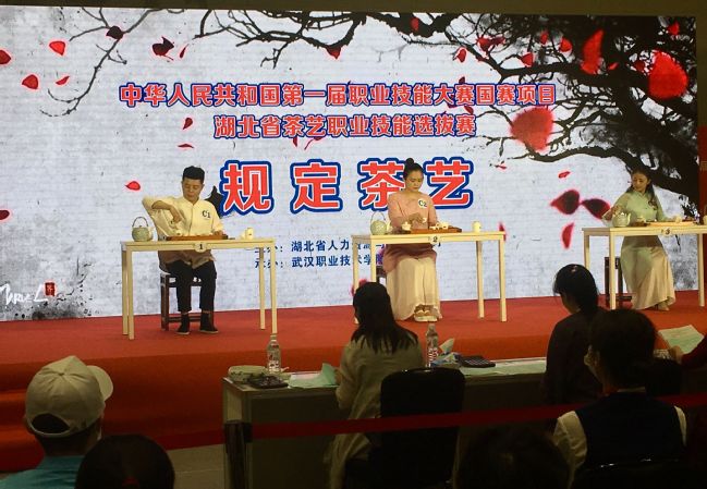 本次茶艺项目湖北选拔赛分为初赛和决赛两轮比赛,初赛包含理论及规定茶艺展示两个环节。理论考试主要考核选手对茶叶专业知识、茶文化历史、茶具、茶馆经营管理、茶馆日常英语等理论知识掌握程度,规定茶艺则考核选手在规定时间内完成一套规定动作茶艺展示。