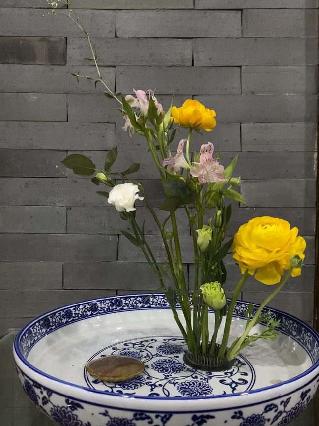 早上十点,各部门负责人去花木城采购鲜花,十二点进行现场准备工作,修剪、醒花、布置现场等。下午两点,活动正式开始,协会会长郭思琪介绍了活动背景及流程,技术部负责人丁梦婷讲解东方插花内涵、花材的选择与保养、东方式常见基本花型插作要领,教授、示范东方式插花步骤和技巧。花协成员们个个跃跃欲试,以高涨的热情投入到插花创作之中,以体现东方韵。
