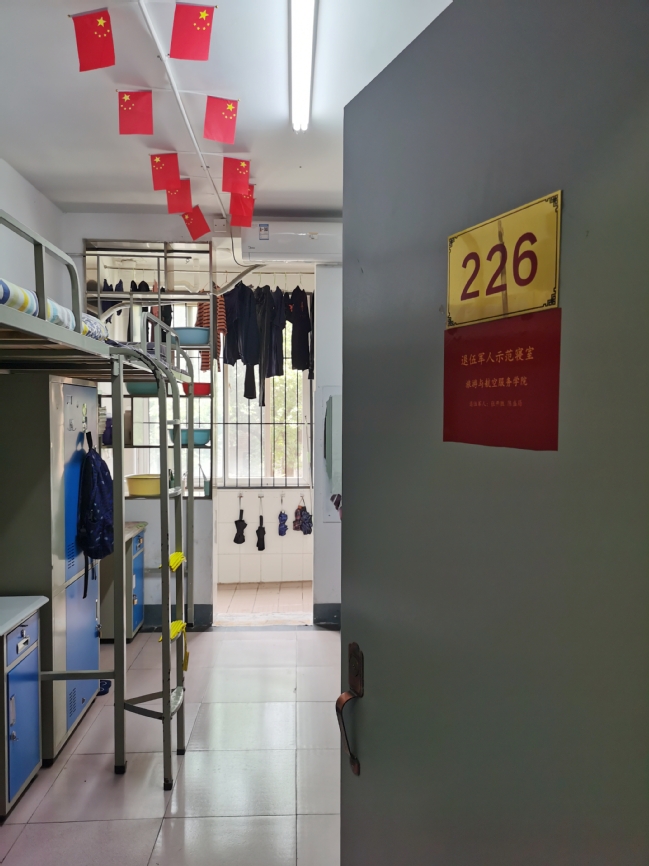 原来,5月27日是9428cn太阳集团古天乐退役军人寝室开放日,但见退伍军人的寝室干净整洁、物品摆放整齐有序、床上的“豆腐块”有棱有角,时处体现出退伍军人一丝不苟的生活态度。还有的寝室屋顶挂满红旗,更是体现了他们热爱祖国、退伍不褪色的军人本色。