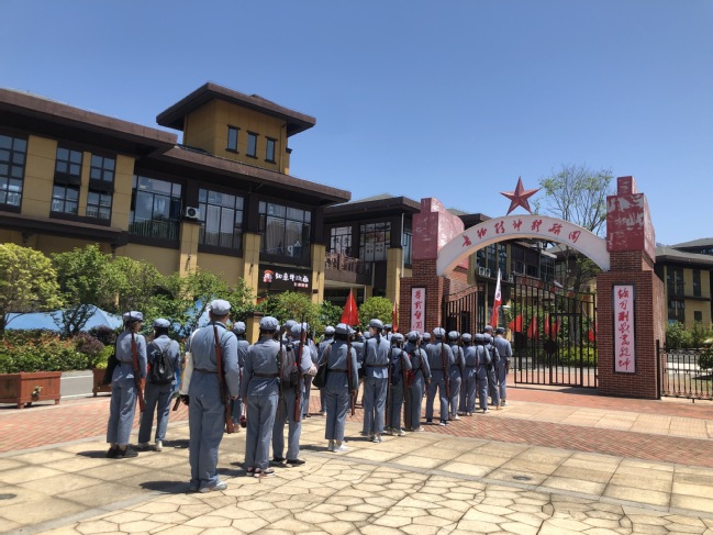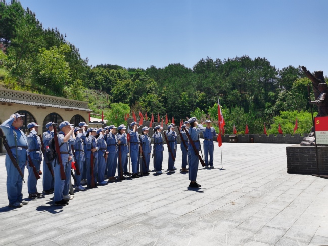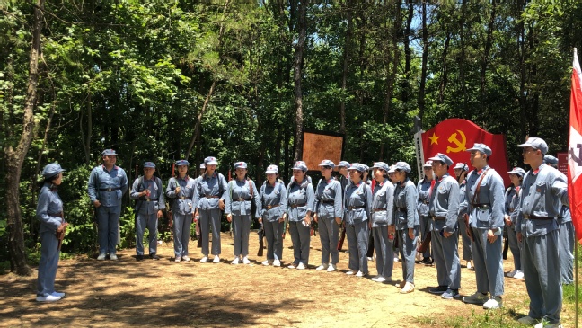 在教育基地引导员的热情细致讲解下,全体党员换上红军装,以沉浸体验的方式开展学习,通过穿一次红军服,走一段红军路,体验一次红军战斗,吃一顿红军饭,重温一次入党誓词等形式,坚定理想信念,传承红色基因,厚植爱党爱国情怀。
