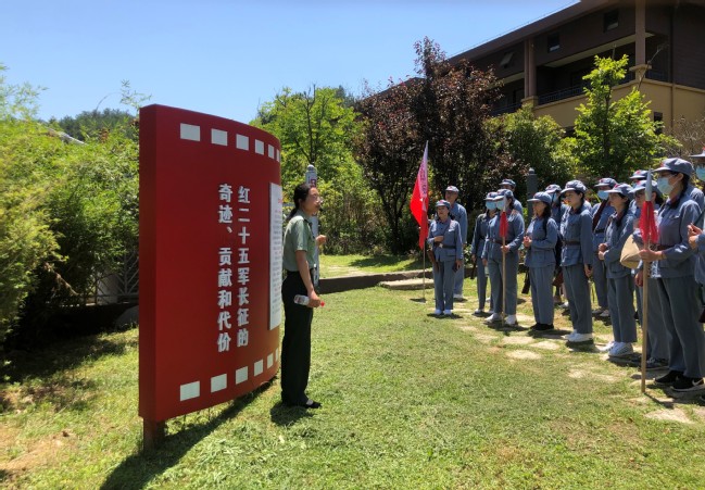 酒店管理党支部教师缪小玲说,以前都是在办公室、在书本里上党课学党史,今天来到英山长征精神体验园实地学习,穿上红军服装、背上“武器弹药”,重走长征路,体验红军的战斗和生活,回顾党史,铭记初心。活在当下这来之不易的繁荣盛世,要倍加珍惜,更应做好本职工作,做员工为学为事为人的示范,献礼建党100周年。
