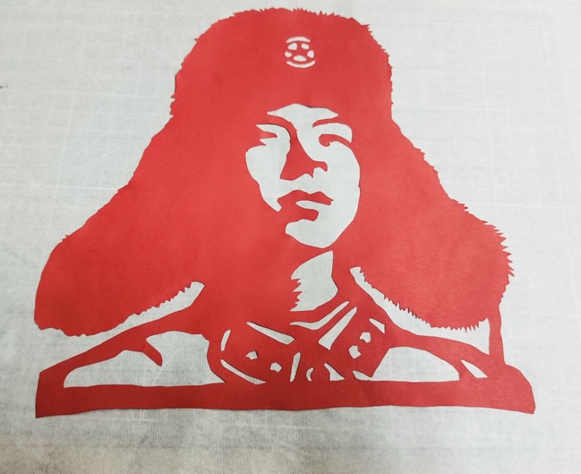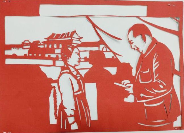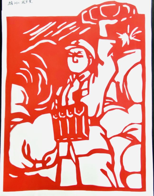 “伟大领袖毛主席带领中国人民经过长期的革命斗争,赢得民族独立、人民解放,创建了新中国,中国人民从此站起来!我选择以毛主席为主题进行剪纸创作,向伟人致敬!”第29批次入党积极分子陈方辉一遍展示剪纸作品,一边介绍作品创意。