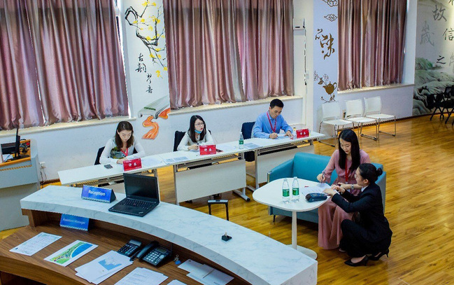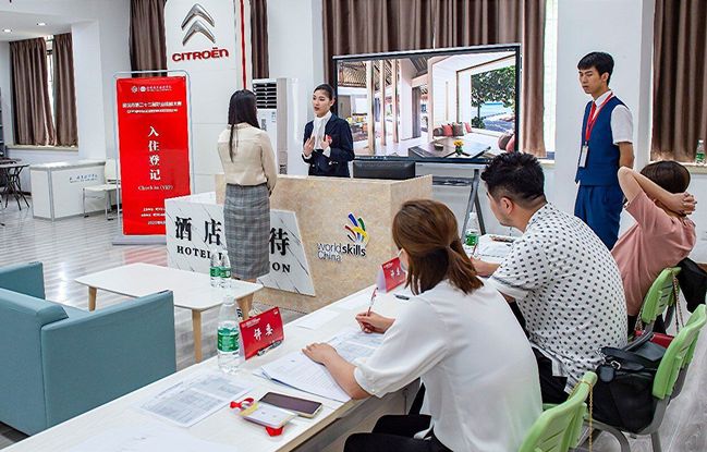 此次技能大赛的酒店接待赛项,高标准对接世界技能大赛的赛项标准,要求选手全程用英文交流,以酒店前台接待岗位为载体,将工作分为数据核算、登记入住(高级别客人含旅游问询)、第三方网络评价回复、结账离店、投诉或突发情况处理等5个考核模块。综合考察选手前台服务技能、职业形象、英语表达、人际沟通技巧等相关能力和素质,是沟通表达与社交技巧的高情商项目,对选手的沟通能力、人文关怀和社交能力有着较高要求。