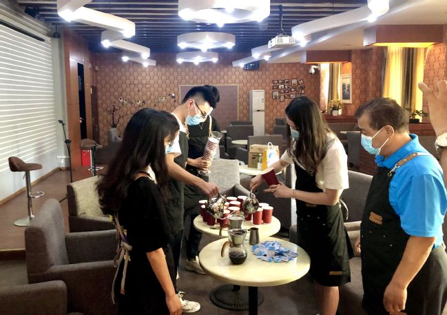 酒管20303班员工用刚学到的祝福语对袁红老师表达喜爱