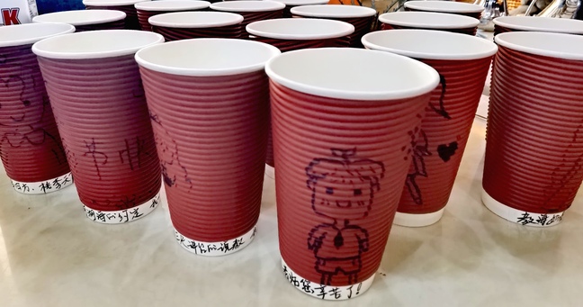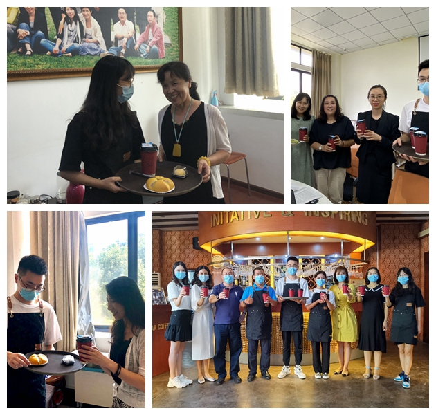 该院员工党支部入党积极分子结合所学专业制作咖啡,绘制图案,写上祝福语,以此表达对老师们的感恩与敬爱。