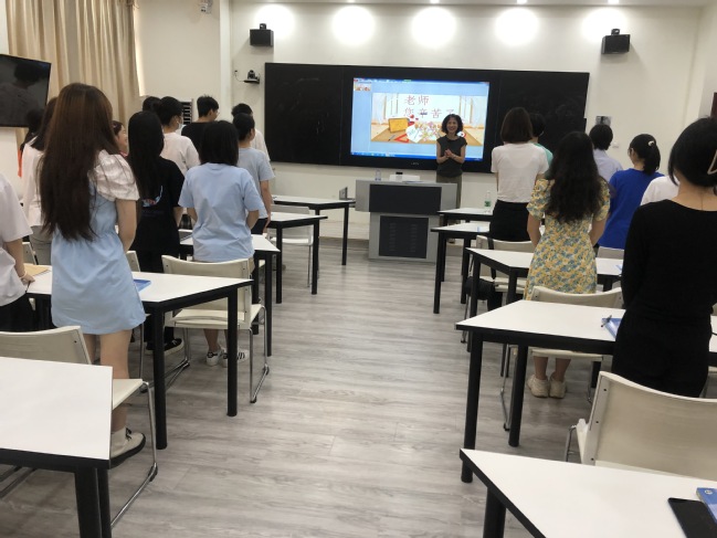 “老师,您辛苦了!”“教师节快乐!”一走进逸云楼,大厅里显示的祝福就映入眼帘。旅游学子们整齐划一地提前20分钟到教室侯课,待老师走进教室,全体员工起立齐声向老师表达节日的问候与祝福。