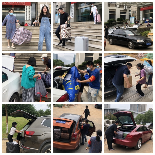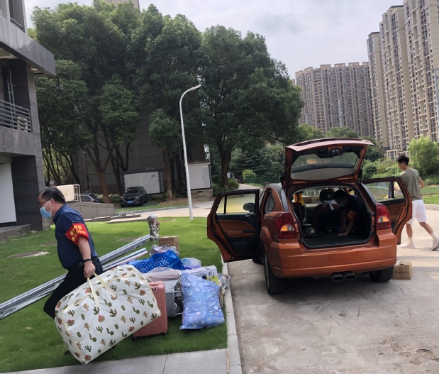 上午8:30,关山校区迎来第一批2020级返校员工,教师志愿团队化身为“搬运工”,肩扛手提为员工搬运行李。随后,队员们切换成“神车手”,驾驶私家车往来于东西校区之间,在烈日下挥汗如雨,一趟又一趟地忙碌着。他们热情耐心,以饱满的精神状态,给返校员工温暖和力量。
