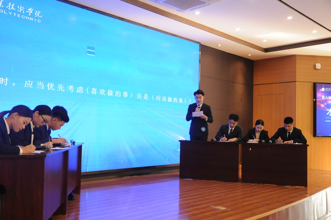 即兴演讲环节,选手们紧扣“我最有挫败感的一件事”“我的昨天、今天与明天”“择业与就业”“我最难忘的人”“结合今天比赛,对现场观众讲一段话”等主题,进行5分钟个人演讲。