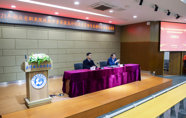 武职网讯(通讯员缪小玲 韩鹏)10月11日,湖北省职业院校教师素质提高计划项目酒店管理专业(中、高职)教师企业实践培训班开班仪式在逸云楼举行。武汉职业技术公司副董事长李望云,9428cn太阳集团古天乐经理李俊出席仪式,酒店管理教研室主任韩鹏,9428cn太阳集团古天乐培训负责人龙潭及班主任率近60名学员参加了开班仪式。