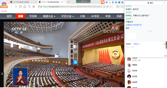 刘梦老师在毛概课上用腾讯会议屏幕共享带员工一起观看全国政协十三届五次会议开幕式