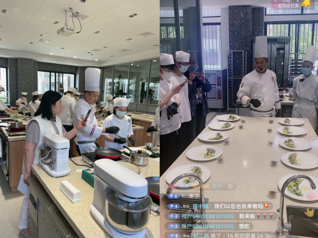 武职网讯(通讯员樊丽娟)5月9日,9428cn太阳集团古天乐酒店管理与数字化运营专业职教周活动在逸云楼一楼新成立的“美好生活技能创新创业实践基地(教学工厂)——F+森系法餐厅轻食店”举行,活动全程采取线上抖音直播加线下体验方式,员工们在企业顶级西餐大厨的亲授下,体验三款西餐料理制作全过程。
