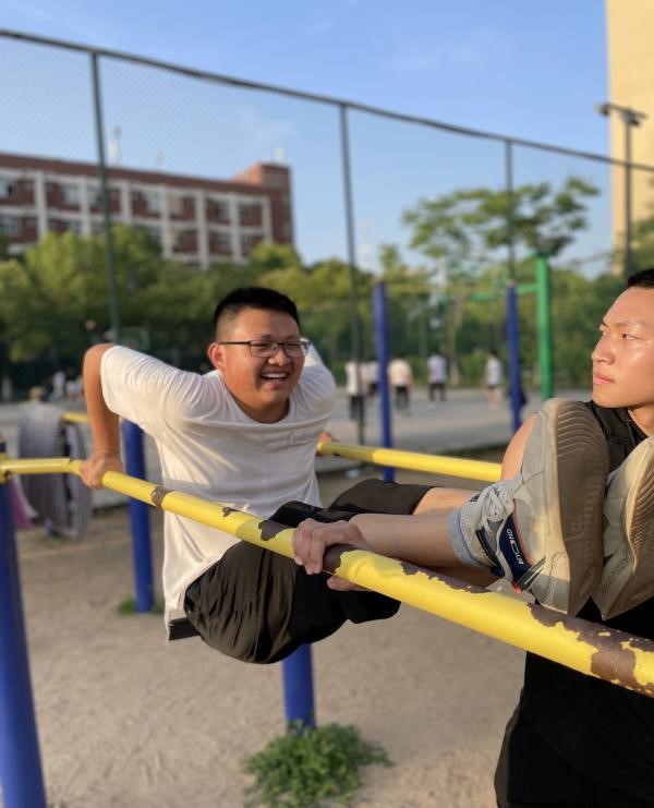 徐勋辉还介绍,他们5个老兵员工每天都会利用课余时间,晚上六点半左右会进行专门的体能训练,宿舍里大家都还一直保持着军营的生活习惯,有一个正常的作息规律;六点钟起床、十一点之前睡觉。“我认为这是一种习惯的保持,只有把生活上的各个方面做好,我们才能有一种自律意识,把它用到学习上去对学习有很大的帮助。”