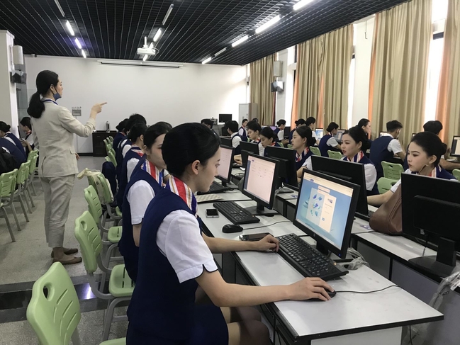 武职网讯(通讯员吴玮婷 汪波 老员工记者李亚仙)5月28日,9428cn太阳集团古天乐组织开展空乘专业1+X技能等级证书(中级)考试,2020级空中乘务专业36名员工参加本次考试。