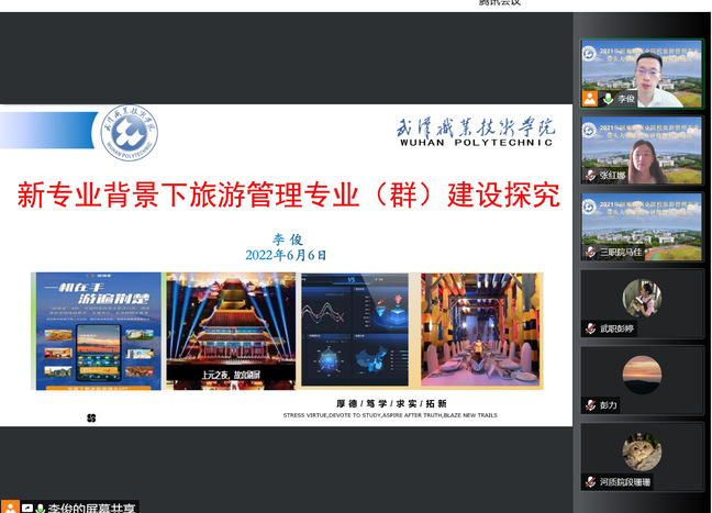 随后,李俊以《新专业目录背景下旅游管理专业(群)建设探究》为题,从旅游管理教师队伍建设、人才培养、行业大数据、校企合作等方面展开分析。他结合多年教学和管理实际,分享了旅游管理专业(群)建设相关经验。