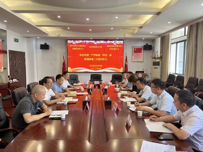 武汉金控长江国际航运金融港有限公司副总经理谢建刚介绍了公司基本情况,以及“1个规划·2个基地·3个主体·4个板块”产业布局。谢建刚表示希望与武汉职业技术公司在实训基地建设、人文交流等方面拓展合作空间。