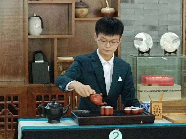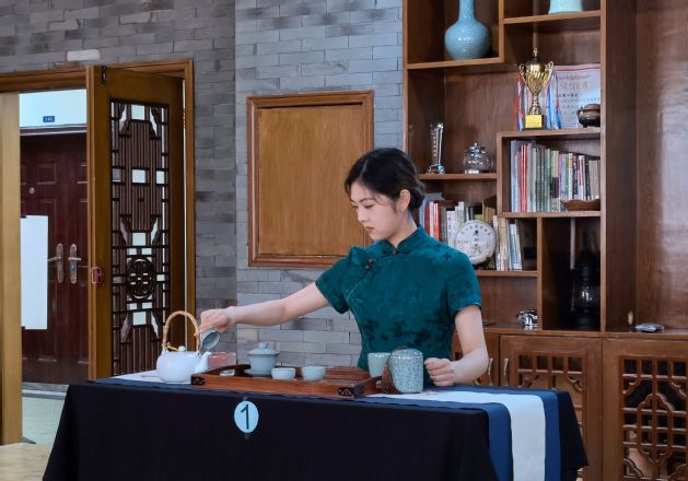 考场上,考生们着旗袍、着茶服、着汉服,摇身变成一个个茶仙子、茶绅士,备具、赏茶、温杯洁具、投茶、出汤、奉茶、闻香、品茗,每一道工序每一个步骤有条不紊,体现了茶艺师冲泡的严谨和对茶文化的敬重,同时展现了每一位考生乐观面对生活的态度,以及对茶艺精髓的把握。