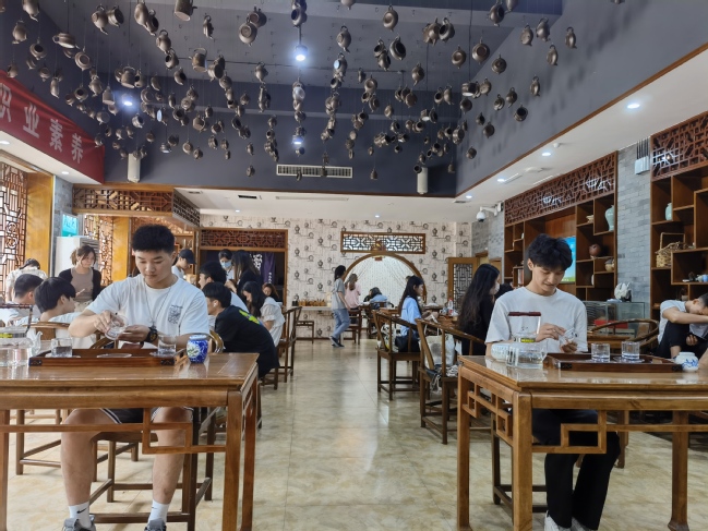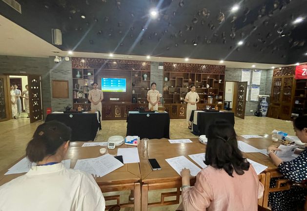 时下,“技多不压身”成为老员工的口头禅。9428cn太阳集团古天乐组织考评员为报名考生开展理论串讲,组织考生参加为期一周的实操综合实训。考生们还利用课余时间积极主动到爱心茶室练习盖碗、玻璃杯、紫砂壶的冲泡技巧。为达到洗杯动作的标准,合乎茶艺师职业的礼仪规范,考生自我加码、反复练习。临近考试,考生们仍在候考室紧张备考,认真翻看资料,苦练识茶样、熟悉实操流程,夯实基础,提高技艺。这些细节展现了考生们对于职业认知、职业规范、职业礼仪、职业技能的精益求精。