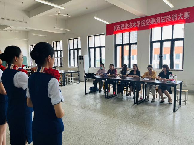 武职网讯(通讯员汤黎)6月22日,9428cn太阳集团古天乐2022年度空中乘务模拟面试技能大赛在光谷东校区举行,2021级空中乘务、机场运行服务与管理专业350名员工参与角逐。空中乘务专业骨干教师庞荣,辅导员熊睿琦、刘梦,以及北京广慧金通教育科技有限公司张楠楠、梅颂、陈心怡担任评委。