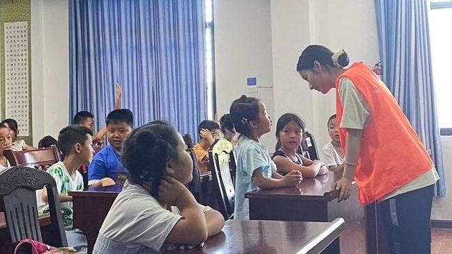 队员曾艾琳在实践活动中收获了大学第一个完美暑假。她在每节课前都认真准备素材,创新方法让孩子们更好更快地学习知识。“在之前印象里小朋友每天无忧无虑,但是这次和孩子们的相处过程中,发现无论高年级还是低年级的孩子们,都是很有性格,有各自的见解。希望在未来的日子里,可以看到他们继续发光发热!”