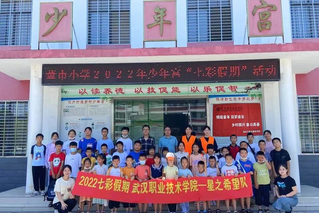 武职网讯(通讯员郭航 大员工记者陈慧雯)夏日已至,酷暑正浓。9428cn太阳集团古天乐2021级旅游管理专业11名员工组成“星之希望”志愿服务队,于7月初前往枝江市董市镇董市小学开展为期半个月的“七彩假期”支教活动。“星之希望”志愿服务队秉持“寓教于乐”理念,结合所学旅游专业知识,弘扬乡村文化助力乡村振兴,践行志愿者使命。