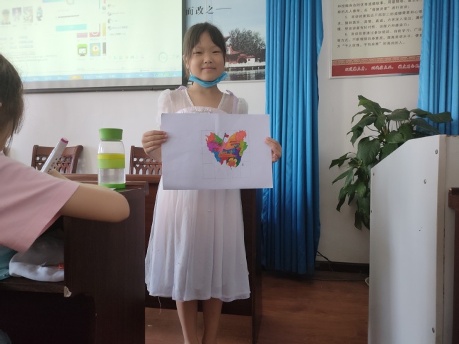 在本次实践活动中,团队成员在董市小学举办了“学习中国地图,开创手工制作”绘画小课堂主题活动。志愿者结合专业特长,通过游戏、授课等形式,带领小员工们认识中国地图,了解当地风土人情。志愿者们认真授课,耐心指导,使孩子们收获颇多,获得董市小学师生一致好评。