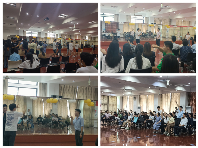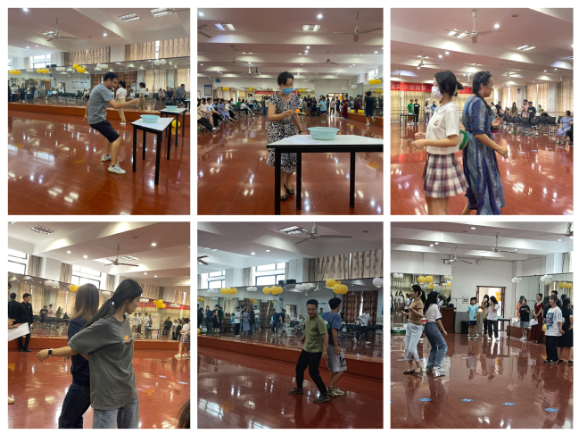 随后公司师生依次开展了“筷子夹乒乓球接力”“你画我猜”、“背靠背夹球”“诗词飞花令”等趣味团体竞赛,教职工和同学们联合组队,互助共进。竞赛持续了一个多小时,现场笑声不断,其乐融融。