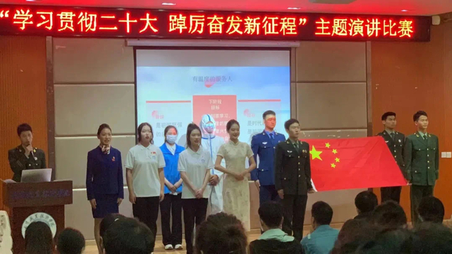 2022年11月9日,周雷卉子(前排右三)参加“学习贯彻二十大”主题演讲比赛
