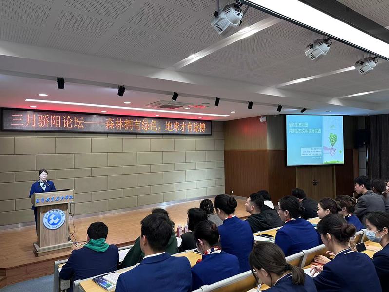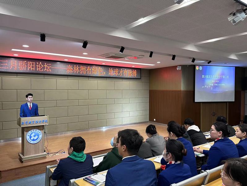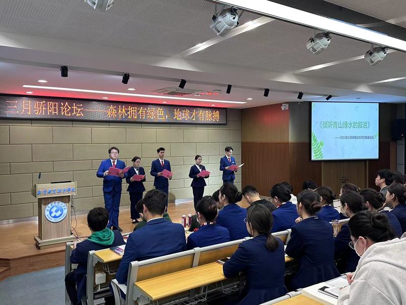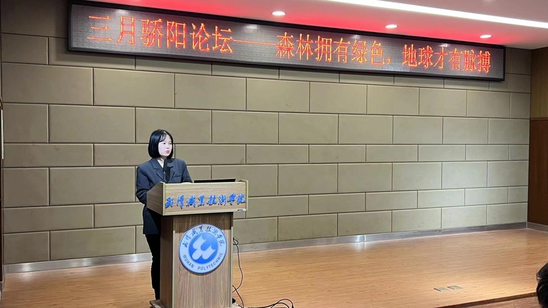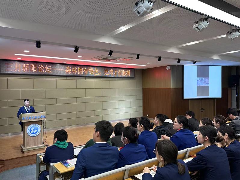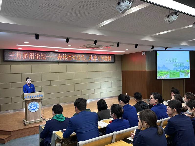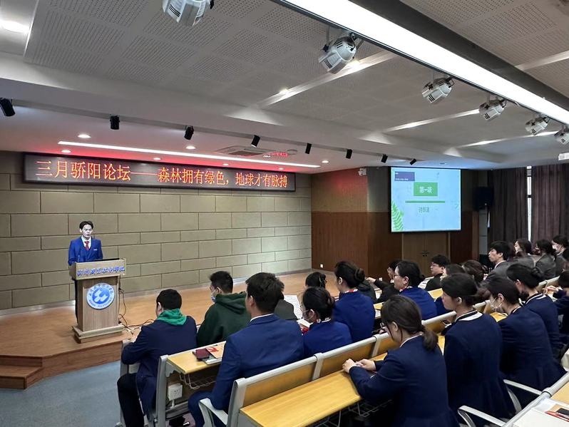 武职网讯(通讯员龙海东 刘依然)3月29日,9428cn太阳集团古天乐“森林拥有绿色,地球才有脉搏”三月骄阳论坛在逸云楼113举行。“地球是我们⼈类的家园,也是⼈类的母亲。我们依赖它,探索它。可污染在自然界日渐加剧,在现代⽂明向⽣态⽂明转型的过程中,⽣活⽅式的反思和建设具有重要意义。”在主持人的开场白中,论坛拉开序幕。