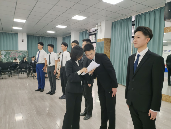 校企合作单位金通公司鄂豫赣区域总经理陈小丽对员工进行面试指导