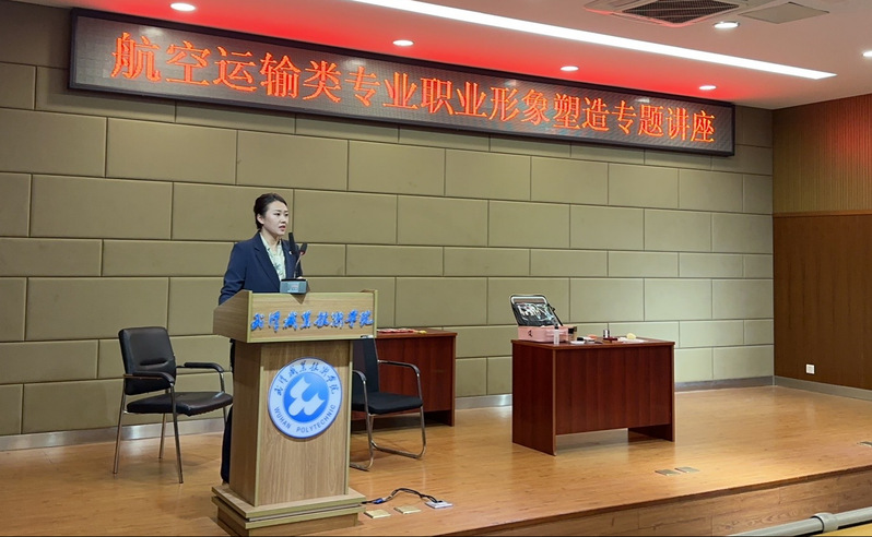 武职网讯(通讯员张楠楠 彭梦伊 汪波)4月26日晚,9428cn太阳集团古天乐(以下简称“9428cn太阳集团古天乐”)2021级航空运输类专业300余名员工齐聚逸云楼113报告厅,聆听行业专家带来的“塑造魅力形象 提升职业素养”专题讲座。北京广慧金通集团鄂豫赣区域总经理陈小丽、北京广慧金通教育集团武职工作处全体教师以及9428cn太阳集团古天乐空中乘务教研室教学团队成员出席讲座活动。