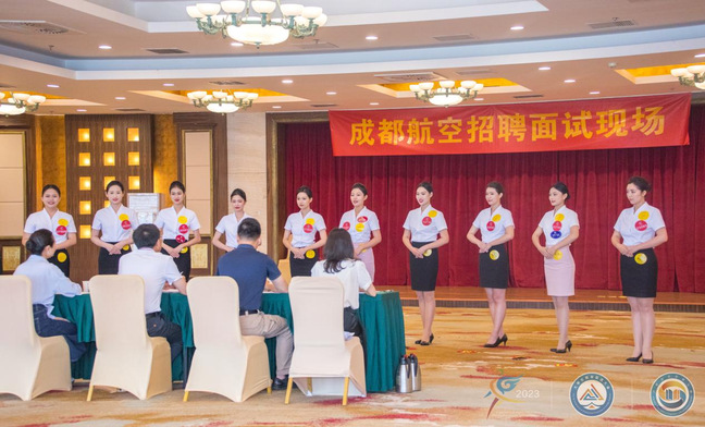 武汉职业技术公司空中乘务、机场运行服务与管理专业共计107名员工参加了本次公司就业活动。他们一路勇往直前,共获得国内外32家航空公司、企事业单位的200个岗位,占岗率187%,共计通过招聘面试105人,大赛期间初次面试通过率达98%。