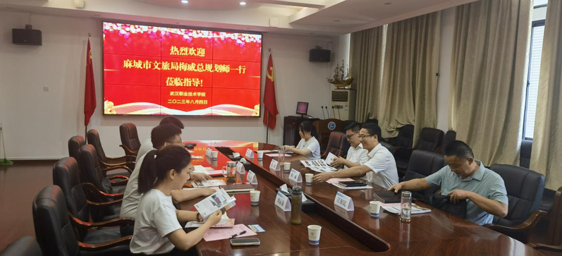武职网讯(通讯员 彭力)8月4日,麻城市文旅局总规划师梅威一行四人来校访问交流,公司学工处副处长夏挺、旅游与航空公司副经理蒋永业以及相关专业骨干教师参加会谈。
