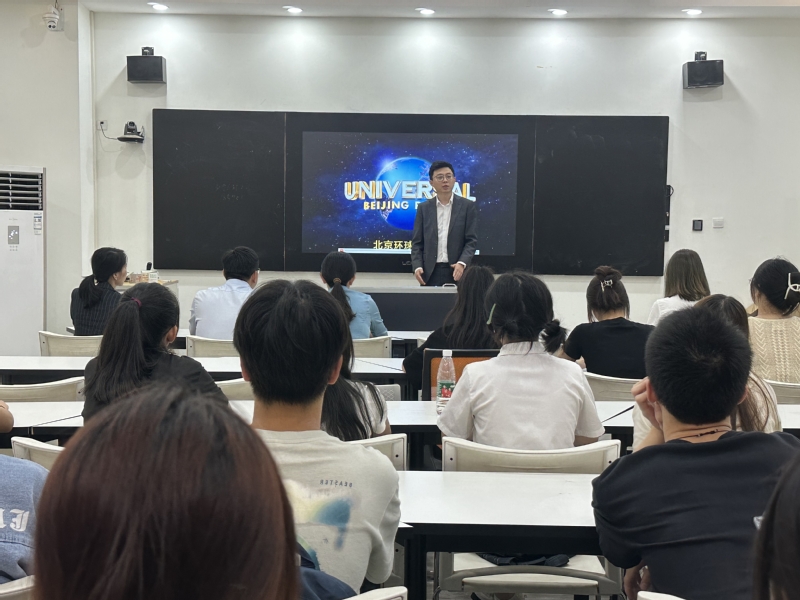 武职网讯(通讯员吴寒)2023年9月28日,2023级旅游管理北京环球度假区人才储备班宣讲会在逸云楼113举行。宣讲嘉宾包括北京环球度假区人才招聘经理任小超先生和校园招聘顾问任昊旸女士。2023级旅游管理专业全体新生参加了宣讲会。