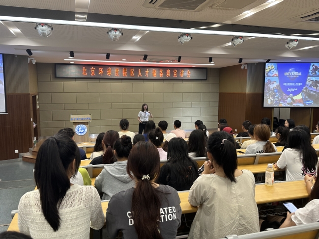 任昊旸顾问介绍了度假区的建设历程、园区概况、实习岗位及职责,随后与员工们进行了深入交流。经过面试,共有31名员工入选环球人才储备班。
