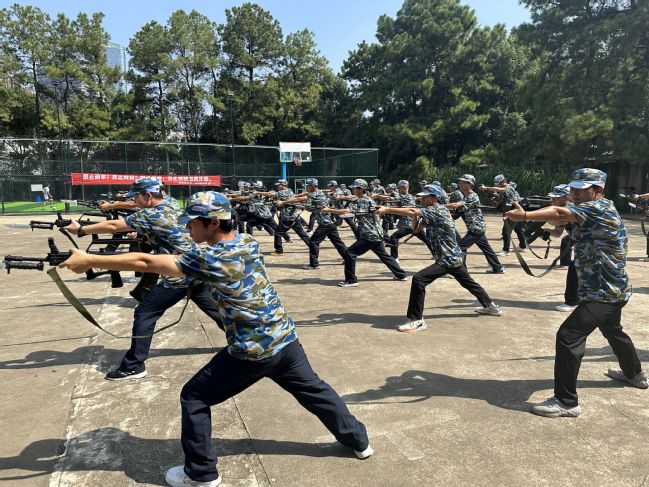“立正、稍息、跨立、齐步、正步、跑步......”依托新生军训,各方阵组织员工进行单个军人队列动作、刺杀操、匕首操、擒敌拳、战术演练等科目的训练。沉浸式体验让全体热血沸腾,新生国防第一课已将他们的爱国热情点燃。