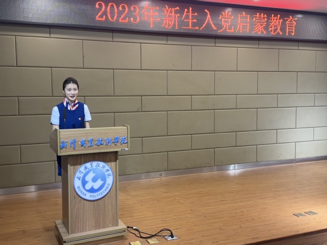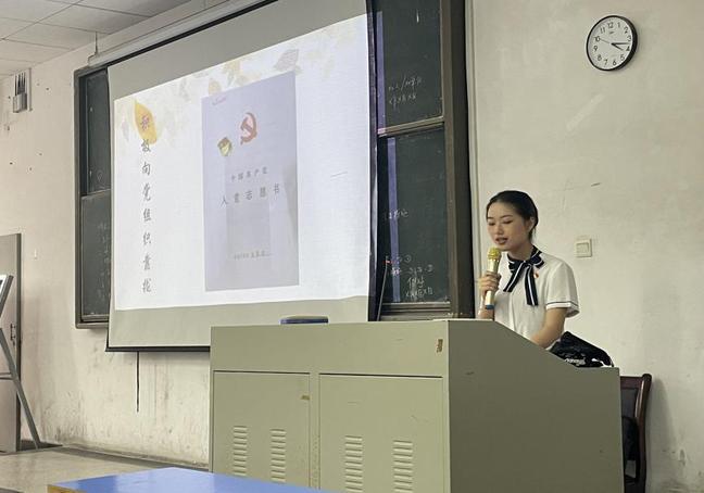 空乘21301班员工、预备党员周冰喻分享了她的入党经历和成长感悟。她说:“2021年9月,我怀着满腔热情踏入武职这个大家庭,在光谷东校区蚂蚁梦工坊接受了入党启蒙教育的熏陶,进一步加深了对中国共产党的认识,对入党要求和入党流程有了更明晰的了解,坚定理想信念和对党的追求。在此后的学习生活中,我对照党章党规,以党员的标准规范自己的言行,努力上进,乐于奉献,主动向党组织汇报思想,接受党组织的考验,成为了一名光荣的共产党员。”