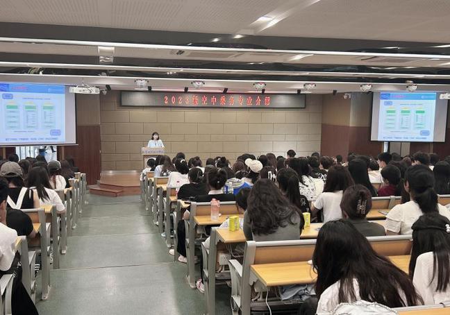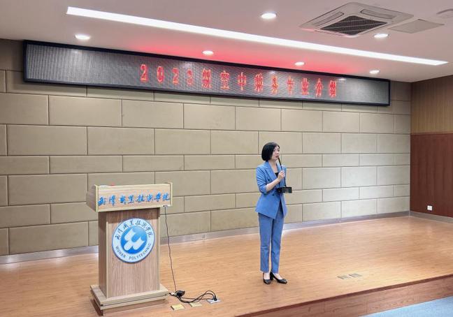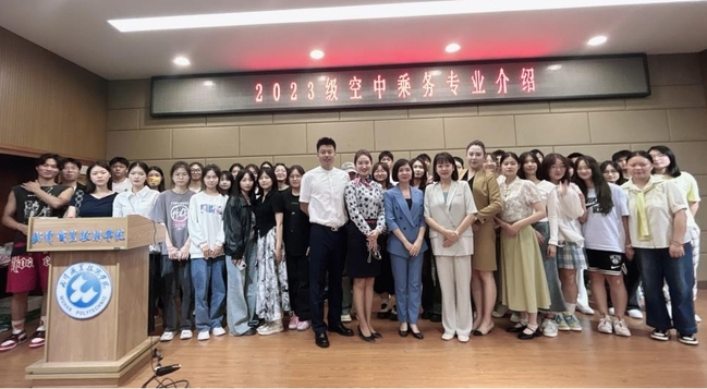 9月27日下午,在逸云楼113报告厅,空中乘务教研室主任汪波、骨干教师江群,校企合作单位北京广慧金通教育集团鄂豫赣区域总经理陈小丽、集团驻武职工作处副主任张楠楠、彭梦伊及空中乘务教研室全体教室参加了2023级空中乘务专业新生入学教育。