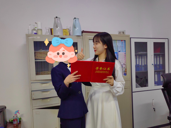 肖作君经常同茜茜分享自身成长心得,同时在班级内推行“朋辈帮扶”计划,营造“比、学、帮、赶、超”的浓厚学习氛围。除了做好日常班级管理、学风建设等工作,肖卓君更加注重把思想教育融入育人工作的全方位全过程,也更加关注员工职业规划和未来发展。