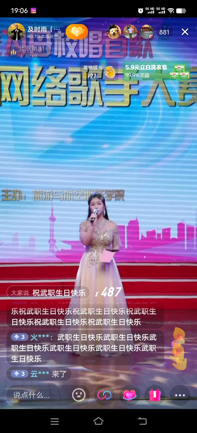 经过海选赛、晋级赛的激烈比拼,10名选手脱颖而出,进入决赛。决赛于10月23日在德礼堂举行,公司合作发展处副处长全建业、旅游与航空服务公司党委副书记陈玲玲、公司办公室许征、双创协同教育中心计四勇、生物工程公司王振宇担任评委,现场座无虚席、热闹非凡。直播平台上千余名学子留言为武职送祝福。最高峰时有487条“祝武职生日快乐”的祝福同时刷屏直播间,点燃决赛盛典,彰显武职学子爱校兴校情怀。
