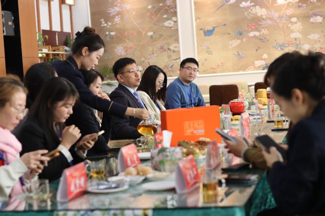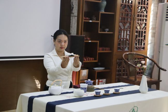 活动期间,员工们齐聚大益茶爱心茶室,参加由茶协10名优秀毕业生全程布置和展示的“时光知味岁月沉香”主题茶会。现场茶香四溢,员工们品味茶韵,回忆在武职的成长岁月,展望美好明天。与此同时,企业嘉宾则移步逸云楼半盏茶室,静心观赏泡茶技巧、茶道礼仪,在沉浸式体验中领略中国传统茶文化茶的魅力,更加坚定了合作育人的信心。