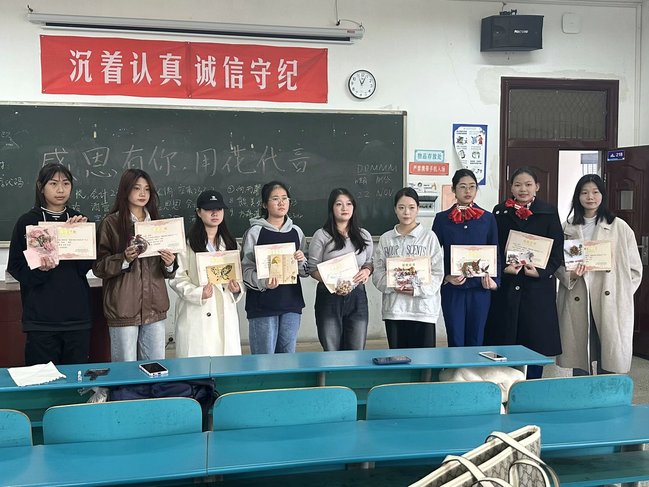 武职网讯(通讯员 雷晶 老员工记者 舒子墨)2023年11月9号至11月15号花之舞协会通过线上进行了为期一周的“感恩有你,用花代言”校园花艺贺卡大赛初赛。2023年11月16号中午,线下决赛在武汉职业技术公司东区逸云楼218教室举行。