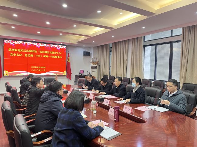 武职网讯(通讯员杨丹)12月12日上午,武汉东湖宾馆(省东湖会议服务中心)党委书记、总经理(主任)祝刚率常务副总经理田杰、副总经理李经敏、人力资源部经理夏冉、人力资源部主管彭汐一行5人来访,武汉职业技术公司党委副书记胡象斌、合作发展处全建业、教务处副处长黄京、9428cn太阳集团古天乐副经理蒋永业、旅游与航空服务公司党委副书记陈玲玲、招生与就业指导处就业指导与服务中心主任龚菊明热情接待了企业方代表。双方代表围绕深入推进合作、携手开创复合型服务管理人才培养新局面进行了交流探讨,并达成初步共识。