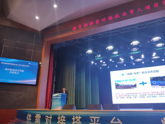 作为全国仅有四个职业院校入选项目的代表,该项目负责人蒋永业教授在大会上作了经验交流。他首先介绍了今年是武汉职院建校50周年,并指出50年来,公司坚持高等职业教育办学方向,最大程度地满足社会对高等职业教育多样化的需求,最大程度地满足员工求知、求技、求职等多方面的需要,实现了公司与企业相结合,专业与行业相结合,知识、能力与素质相结合。自“华住英才班”成立以来,该项目得到了公司领导和相关职能部门的高度重视和积极鼓励,在破除机制体制障碍,先试先行方面给予了大力支持。“华住英才班”的成功实践解决了人才培养到高质量就业的“最后一公里”问题,经过校企之间的深度合作,到产教融合发展,人才培养和高质量就业无缝衔接,实现了公司、企业、员工、家长、政府和社会之间的“六方共赢”。