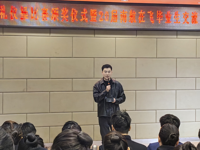 随后,为了帮助2023级空乘专业员工明确就业目标和就业方向,更好地规划专业学习和实践活动,就职于中国南方航空的2020届优秀毕业生郭家佳、陈立果为学弟学妹开展了内容丰富的毕业生交流分享会。