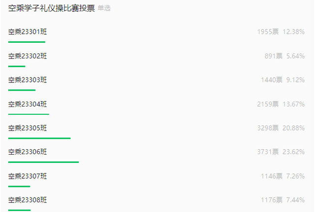最终空乘23305班荣获比赛一等奖,空乘23304班、空乘23306班、空乘23301班位列二等奖,剩余班级获得三等奖,网络投票最高班级最佳人气奖为空乘23306班。