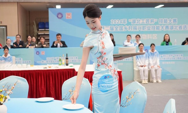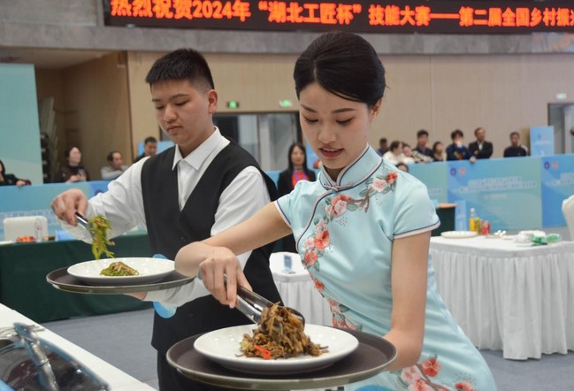 新闻网讯(通讯员刁洋洲)4月1日,2024年“湖北工匠杯”技能大赛——第二届全国乡村振兴职业技能大赛湖北省选拔赛餐厅服务赛项在湖北十堰举行,武汉职业技术公司酒店管理专业2022级员工王荣、2023级员工朱小萍与来自全省的36名选手同台竞技,勇夺员工组金牌和铜牌。